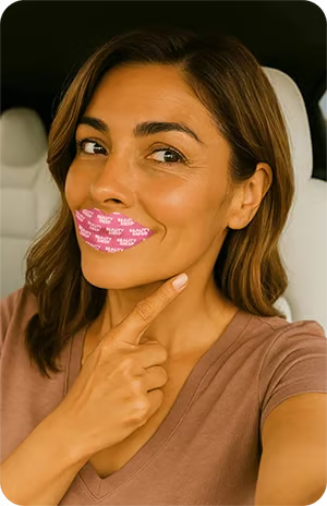 Regular tape (like medical tape or duct tape) is dangerous and not designed for overnight use on your face. It can cause skin damage, allergic reactions, or even breathing difficulties. Beauty Sleep uses medical-grade, hypoallergenic adhesive that's been specifically tested for facial skin. We include a safety breathing hole, use the perfect amount of adhesive (not too strong, not too weak), and our shape is designed specifically for women's lip anatomy. Regular tape could also leave toxic residue on your sensitive lip skin.